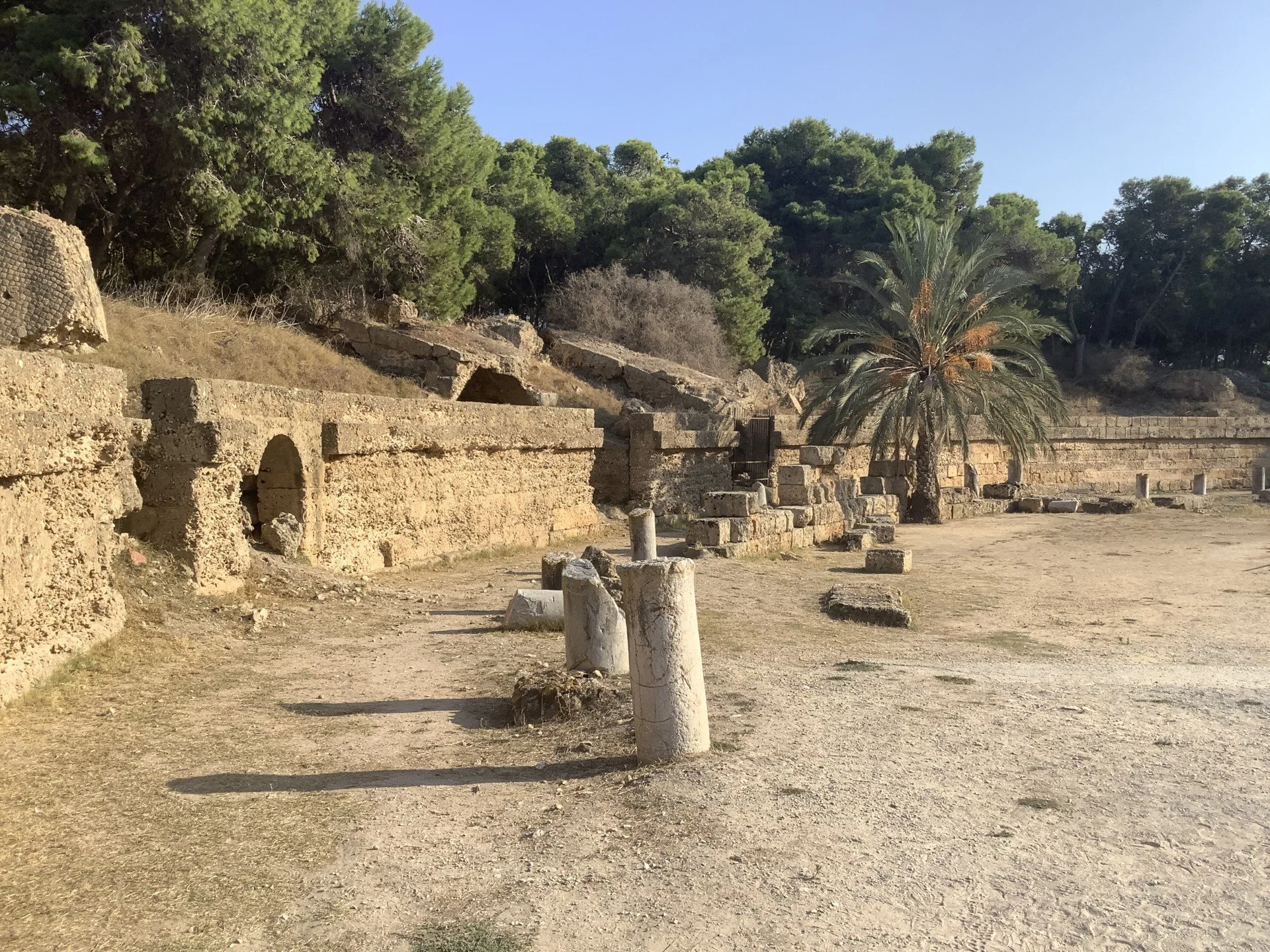 The amphitheatre (which gets a mention on pp 65-66 of ‘Monty, My Part in his Victory’ S. Milligan - Michael Joseph 1976) was free of visitors on a bright September afternoon and shaded by picturesque date palms. The traces of a 19th century monument to the catholic saints Perpetua and Felicity and a dedicated chapel sit near the centre. This commemorated their 3rd century martyrdom in Carthage - possibly in this very venue.